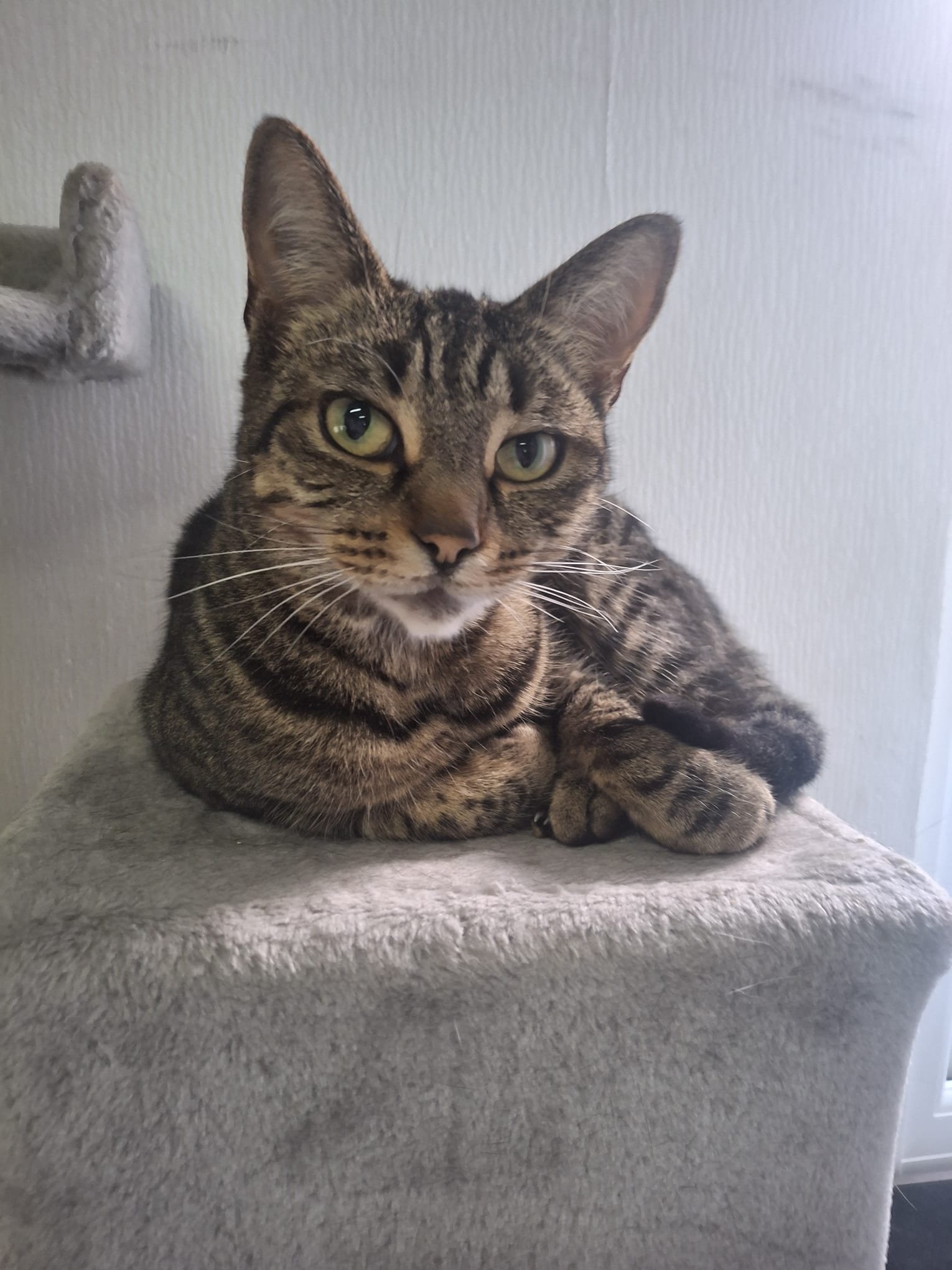 Betsey is a beautiful tabby girl who came into Pippa’s through no fault of her own. Her much loved human mum had to move into assisted housing where pets weren’t allowed. She refused to go until she knew Betsey would be safe and well cared for, but sadly her family were unable to take her in.