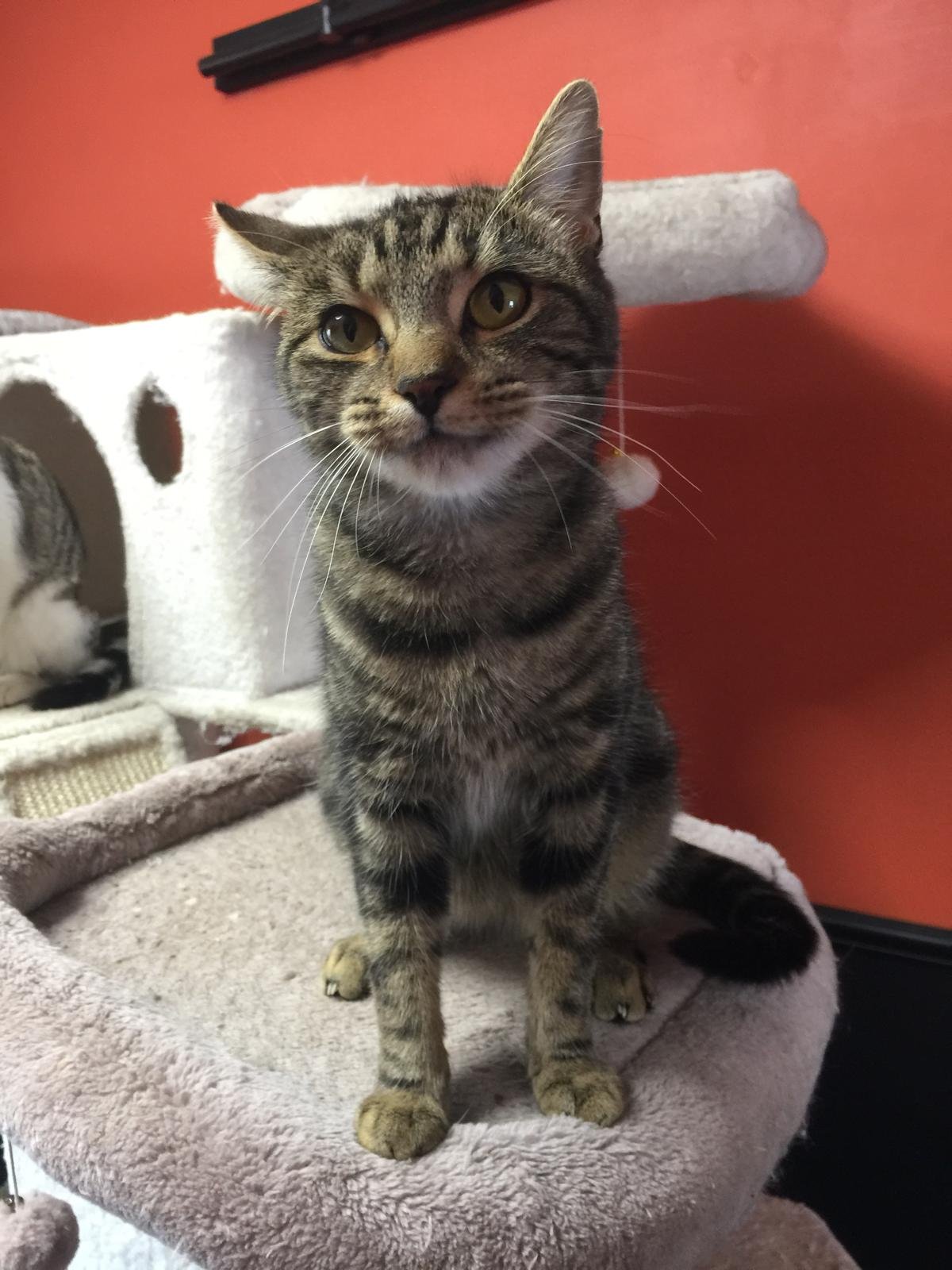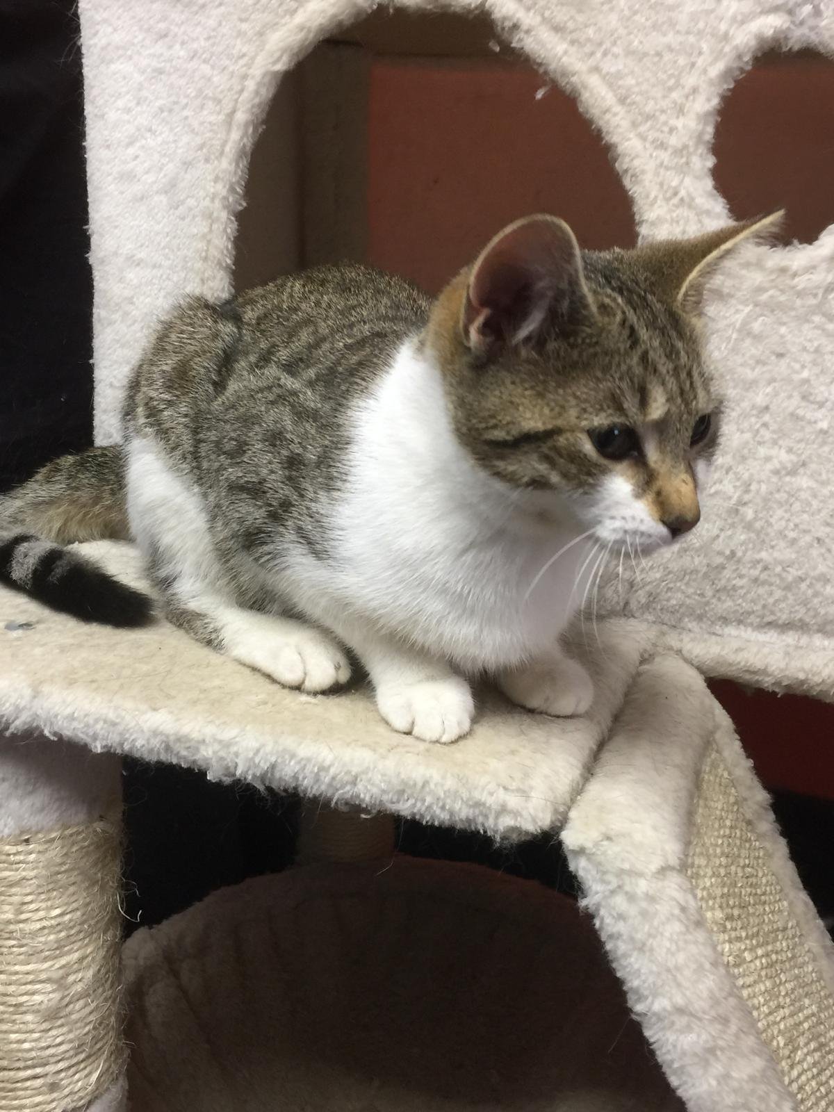 ​Ollie, who is in fact a girl despite the name, came to us with her last naughty kitten, Nacho, who has now been adopted. Now it’s her turn to find her happy ending!