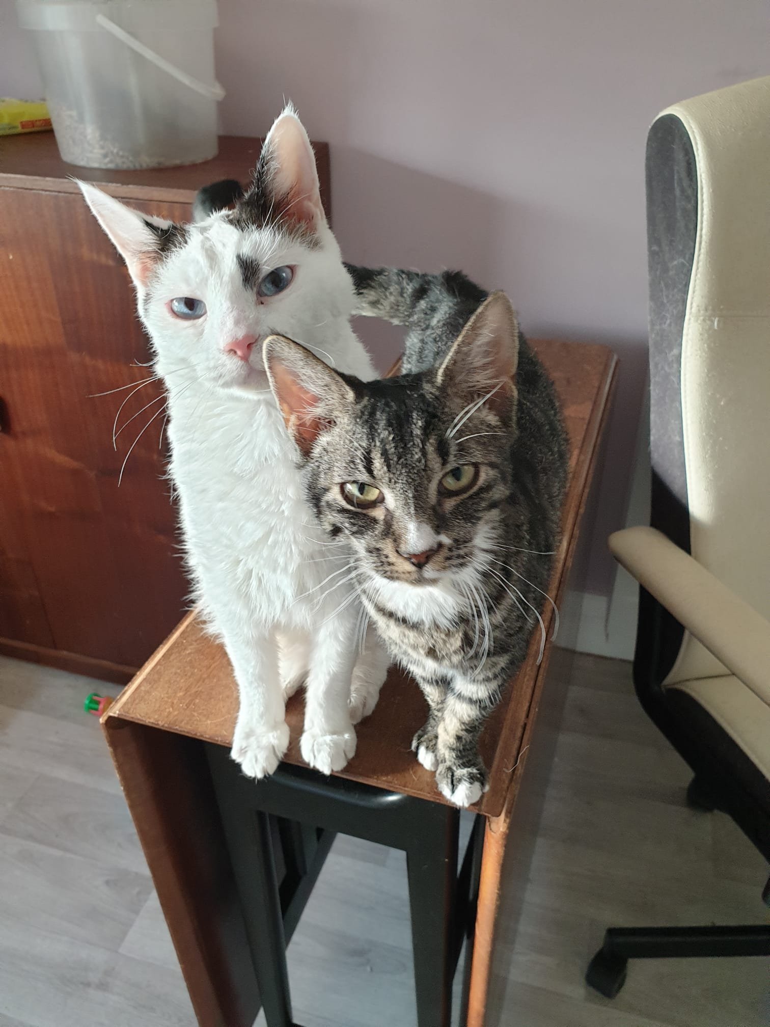 They must be rehomed together, can live with children, and could also live with a cat-savvy dog.