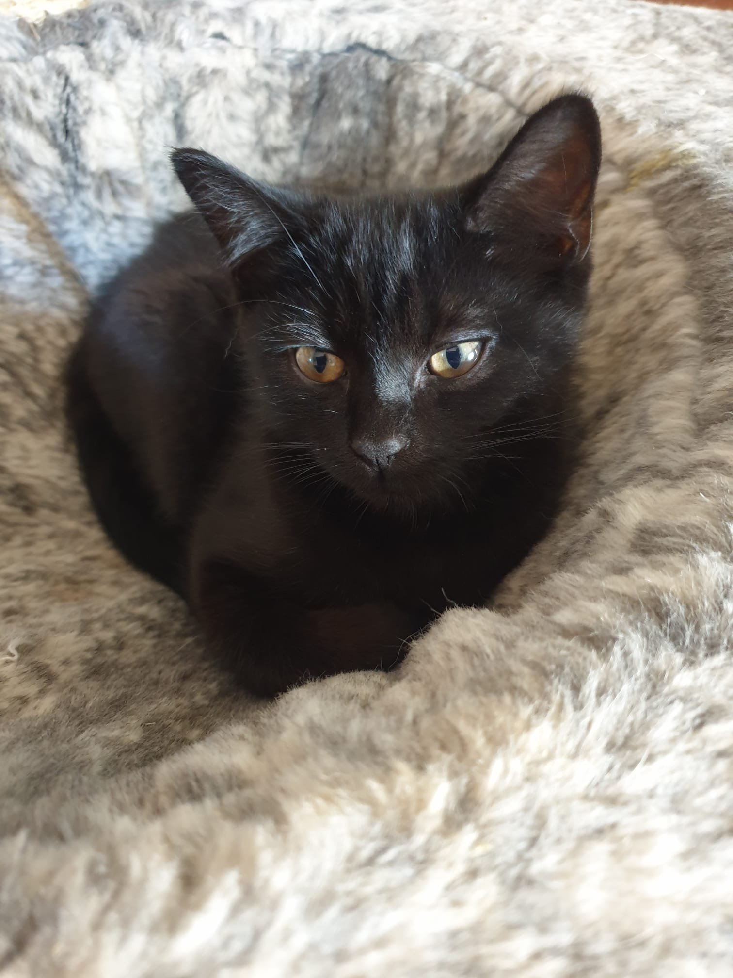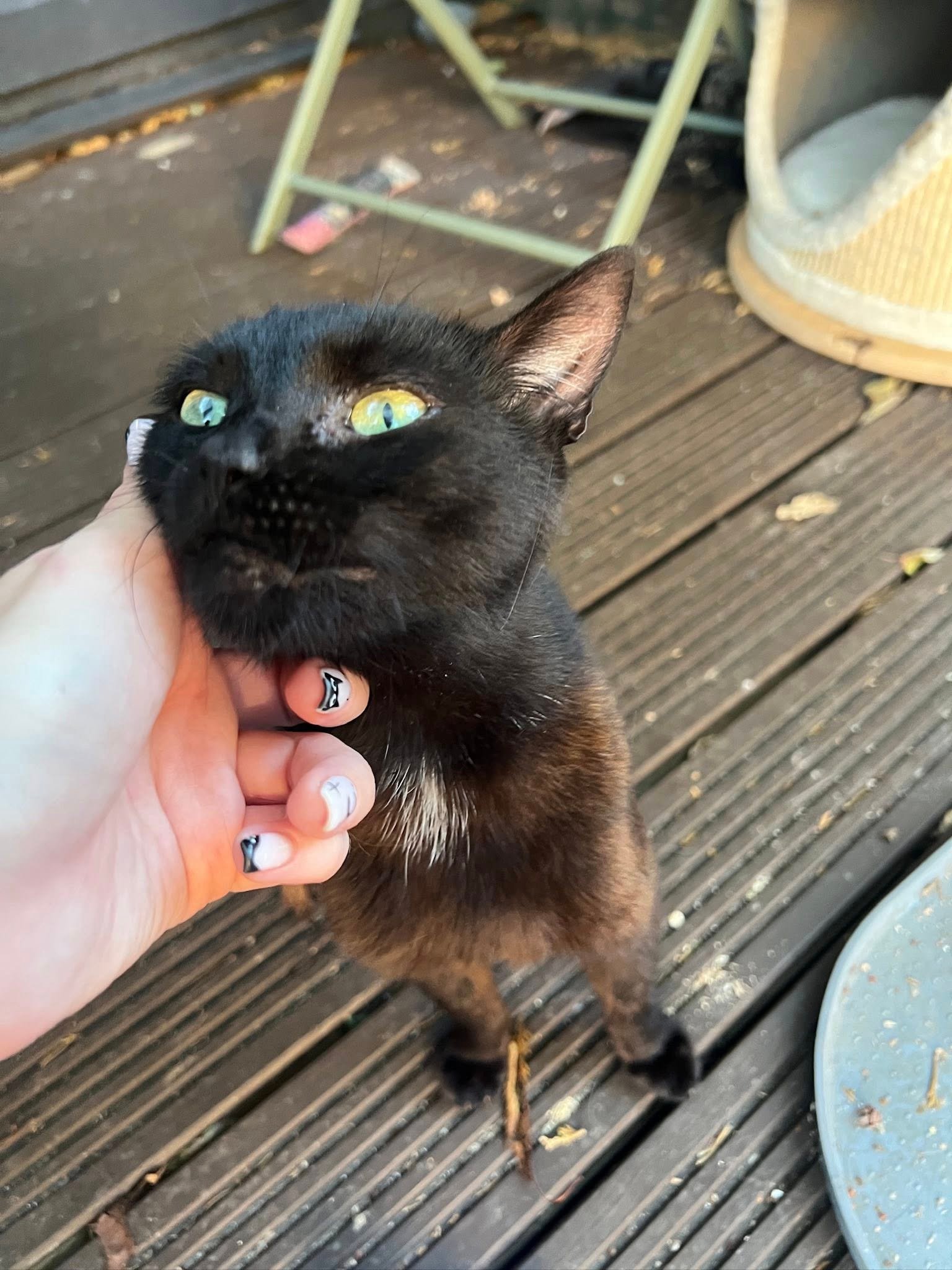 ​Bellatrix is a beautiful young kitten, around 10–12 months old, who has already been through far too much for her age. Still just a baby herself, she’s been left to have two litters (that we know of), but she’s now safe, neutered, and finally able to enjoy being a kitten again. Bellatrix loves to play and will happily wrap herself around your ankles for fuss and attention. She does, however, need time to build trust, so she’d be best suited to a home with a single owner or a couple who can give her their full attention. Ideally, her new person will be cat-savvy and patient, as Bellatrix can sometimes give a little love bite when she gets overstimulated — she just needs someone who understands her language and can help her feel secure and loved.