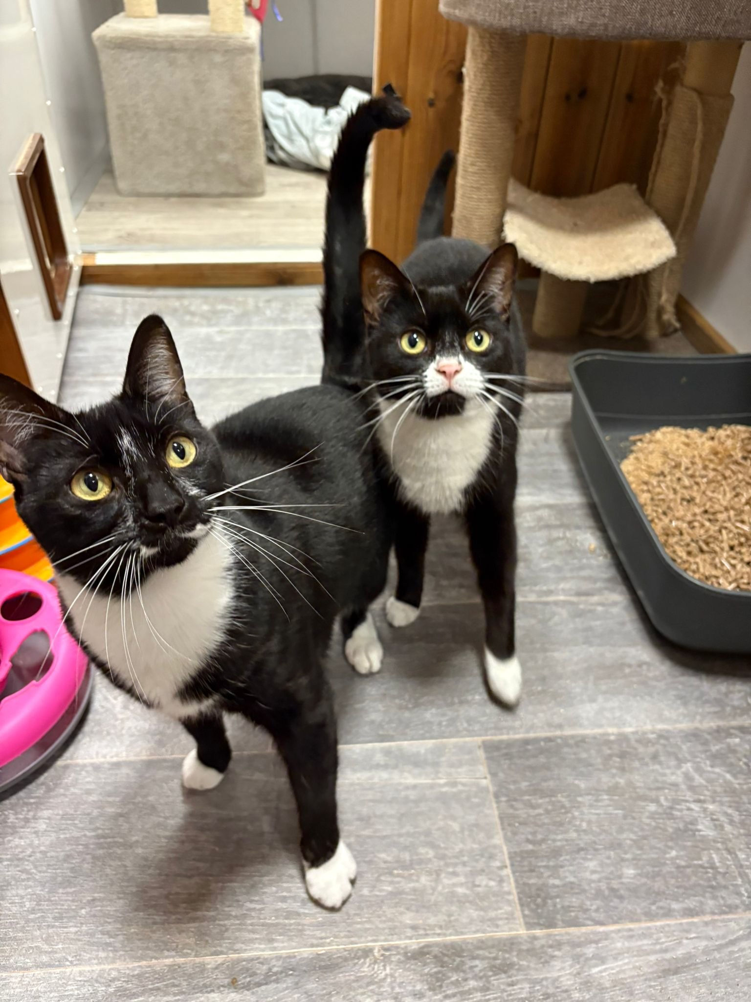 They must be rehomed together, and can live with cat-savvy children but they are not a fan of dogs. When older, they will need safe outdoor access away from busy roads.