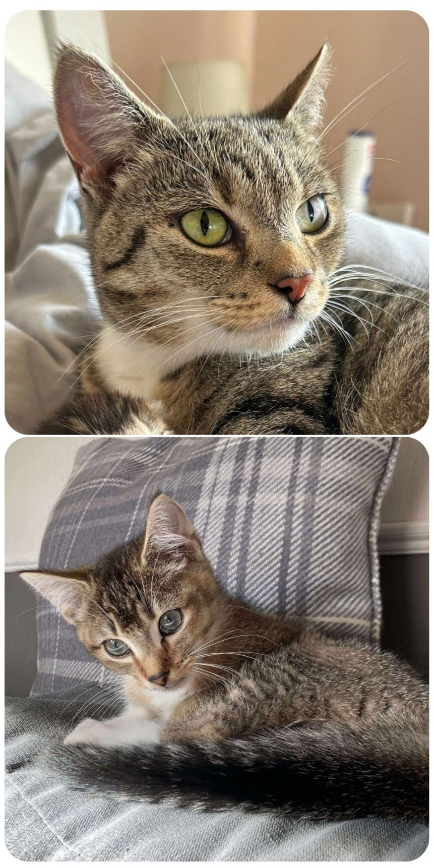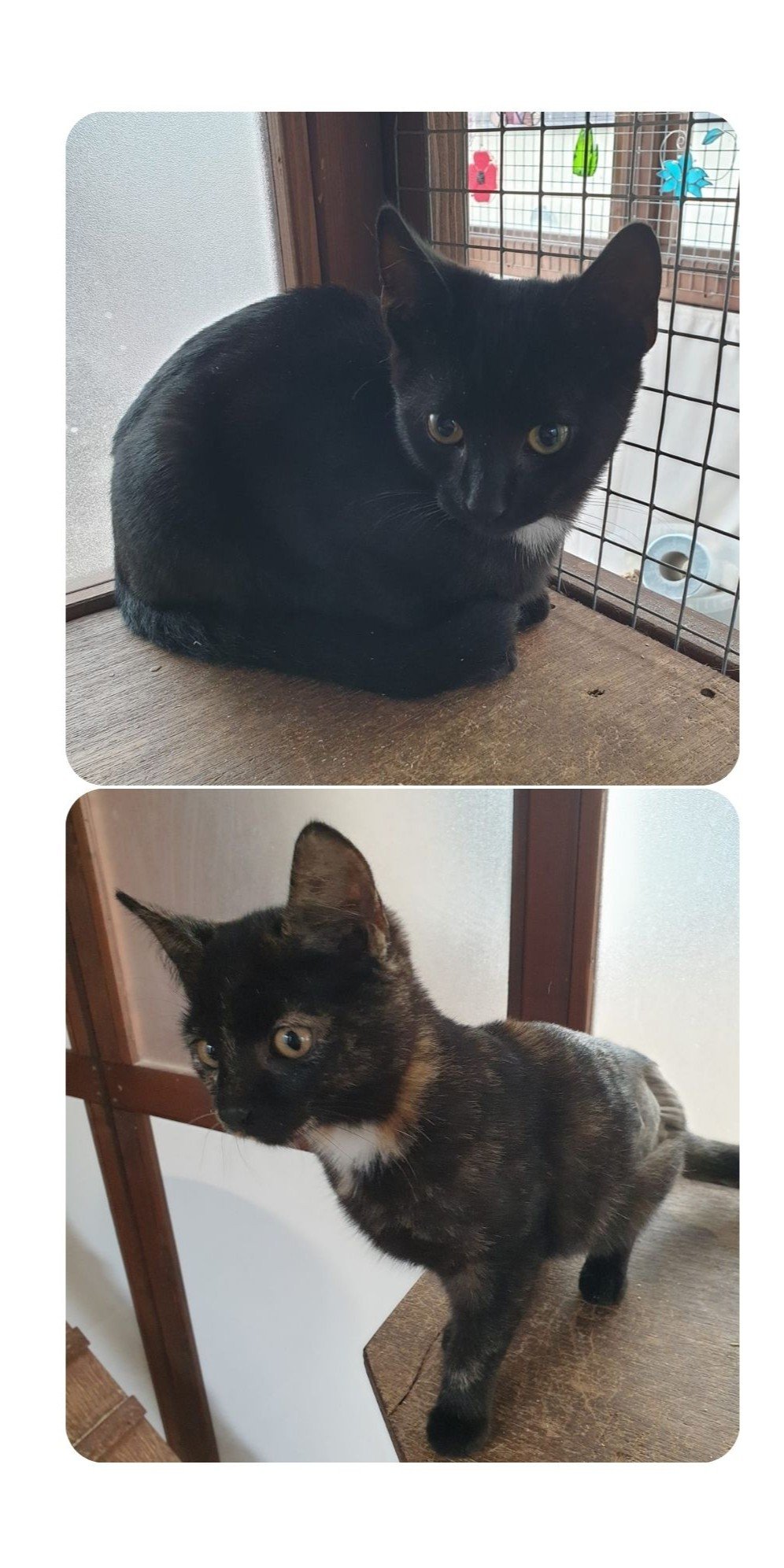 They are chipped, spayed, and vaccinated, and would suit a home with safe outdoor access once they’re older and fully settled. They’ve not met dogs, and would be fine with older, cat savvy children that would give Munchie space while she builds confidence.