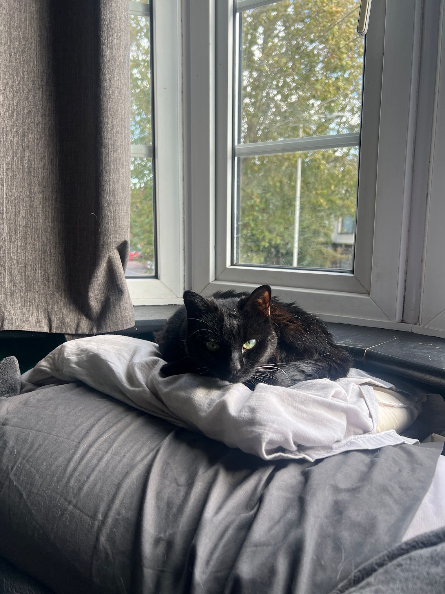She’s inquisitive, playful and affectionate and will follow you round the house. Forget any privacy for your bathroom visits – no closed door is safe, including your cupboards! Due to her previous experience we are looking for a home with no dogs and no very young children. Unfortunately she will probably also need to be the only cat. The only exception would be a very chilled cat who would show no interest in her. She has been very picky about who she will allow to share her space!
