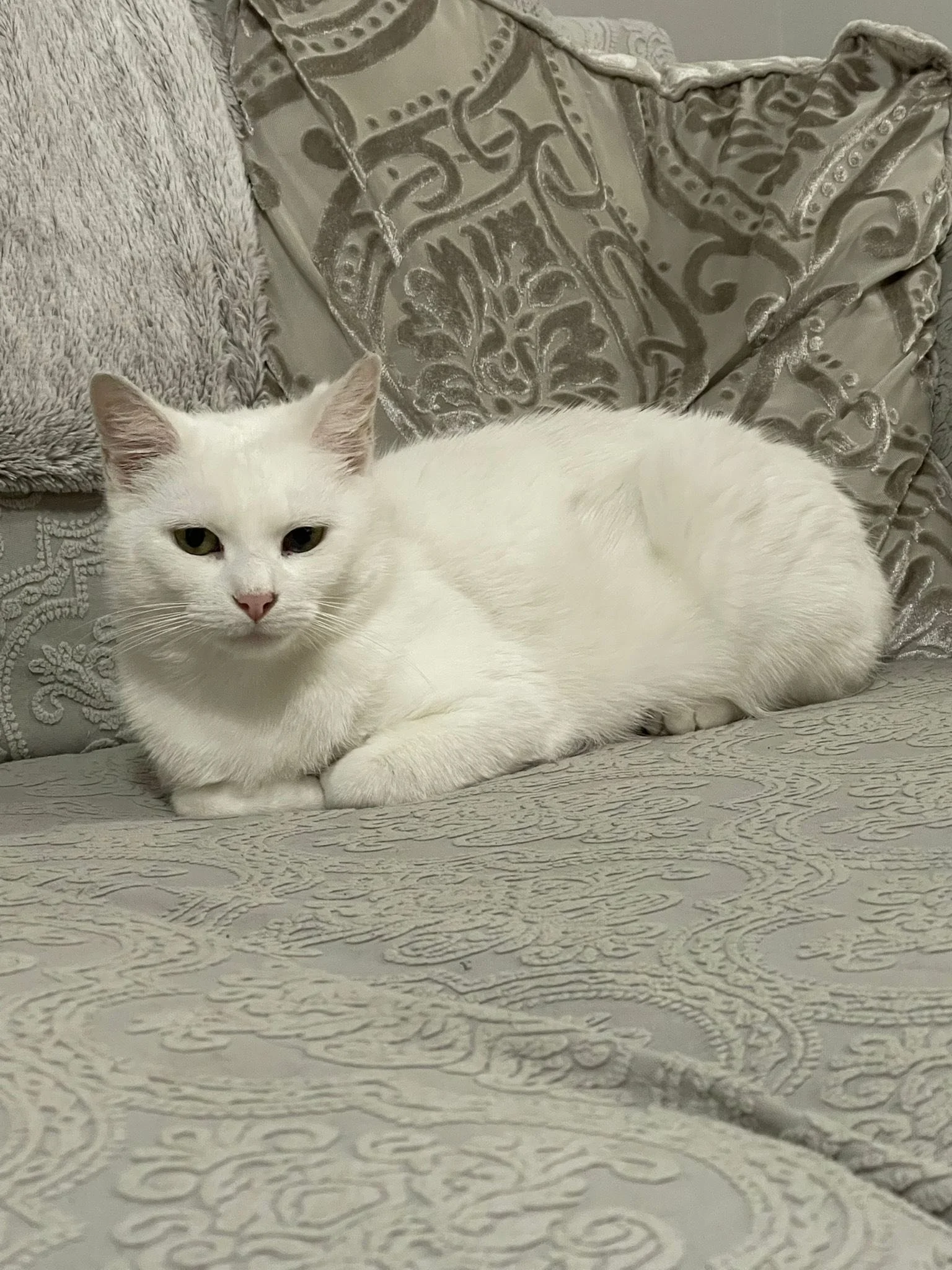 Pearl’s favourite pastime is chasing a laser, and she also adores her dangle snake toy, Dreamies treats, and a soft, gentle brush.